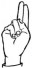 На ћирилици написано ЛАНА ЈОВЕЉИЋ састоји се из 11 слова [?]. Исписано ћириличном једноручном азбуком за глувонеме:
